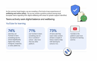 Podle výsledků 74 % teenagerů sleduje YouTube kvůli škole a 71 % proto, aby se naučili něco nového pro zábavu. Data zároveň potvrzují, že YouTube se stává běžným nástrojem i pro rodiče a učitele – průzkum Oxford Economics ukázal, že 84 % učitelů v EU využívá YouTube při výuce a 80 % rodičů považuje obsah na platformě za kvalitní vzdělávací zdroj.