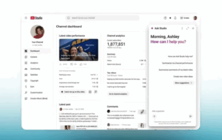 YouTube Studio se pak dočkalo nové funkce Ask Studio – AI chatbota, který autorům nabídne strategické tipy, personalizované doporučení a odpovědi na otázky týkající se jejich obsahu i růstu kanálu.